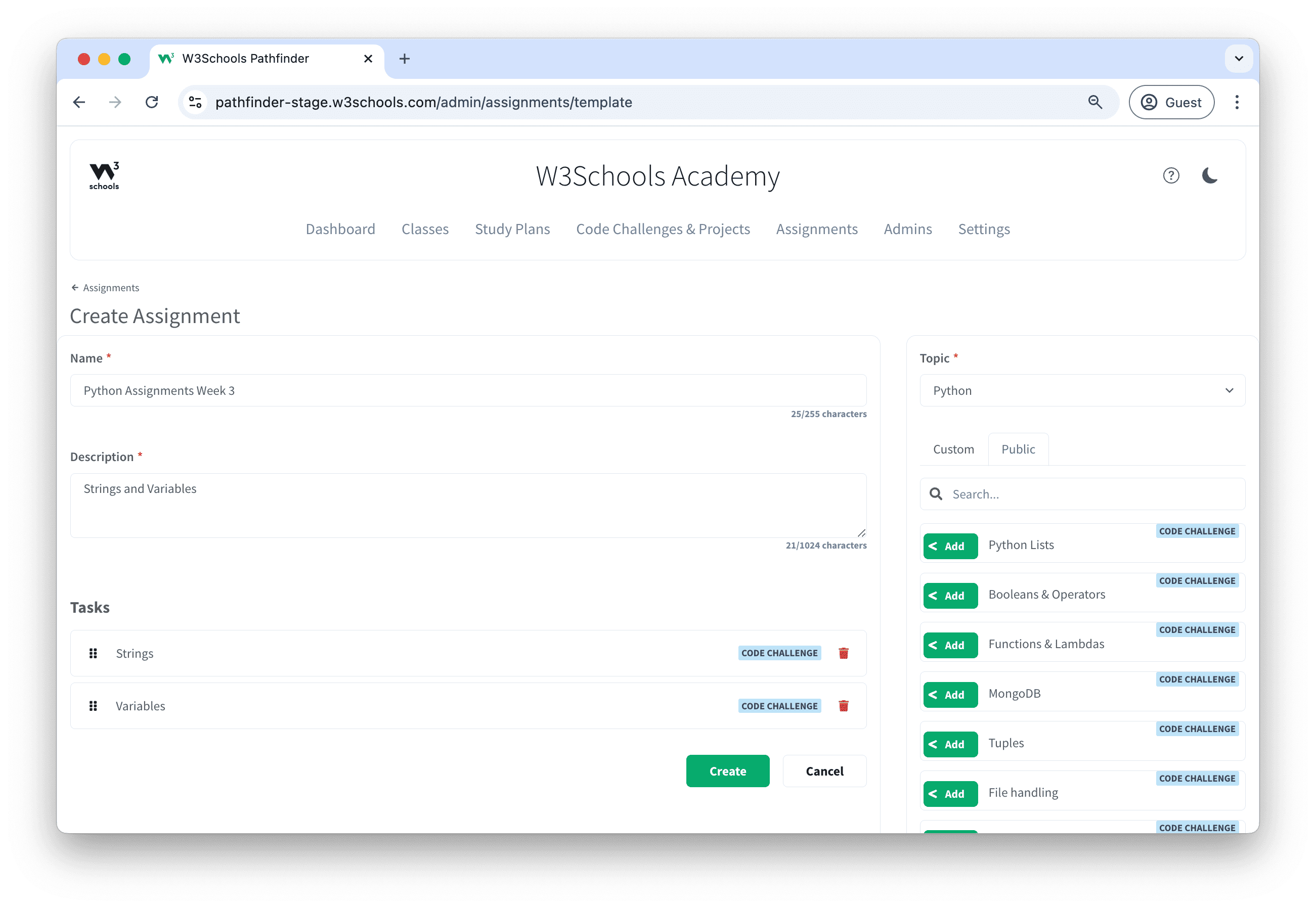 W3Schools Academy offers two types of activities: Challenges and Projects.