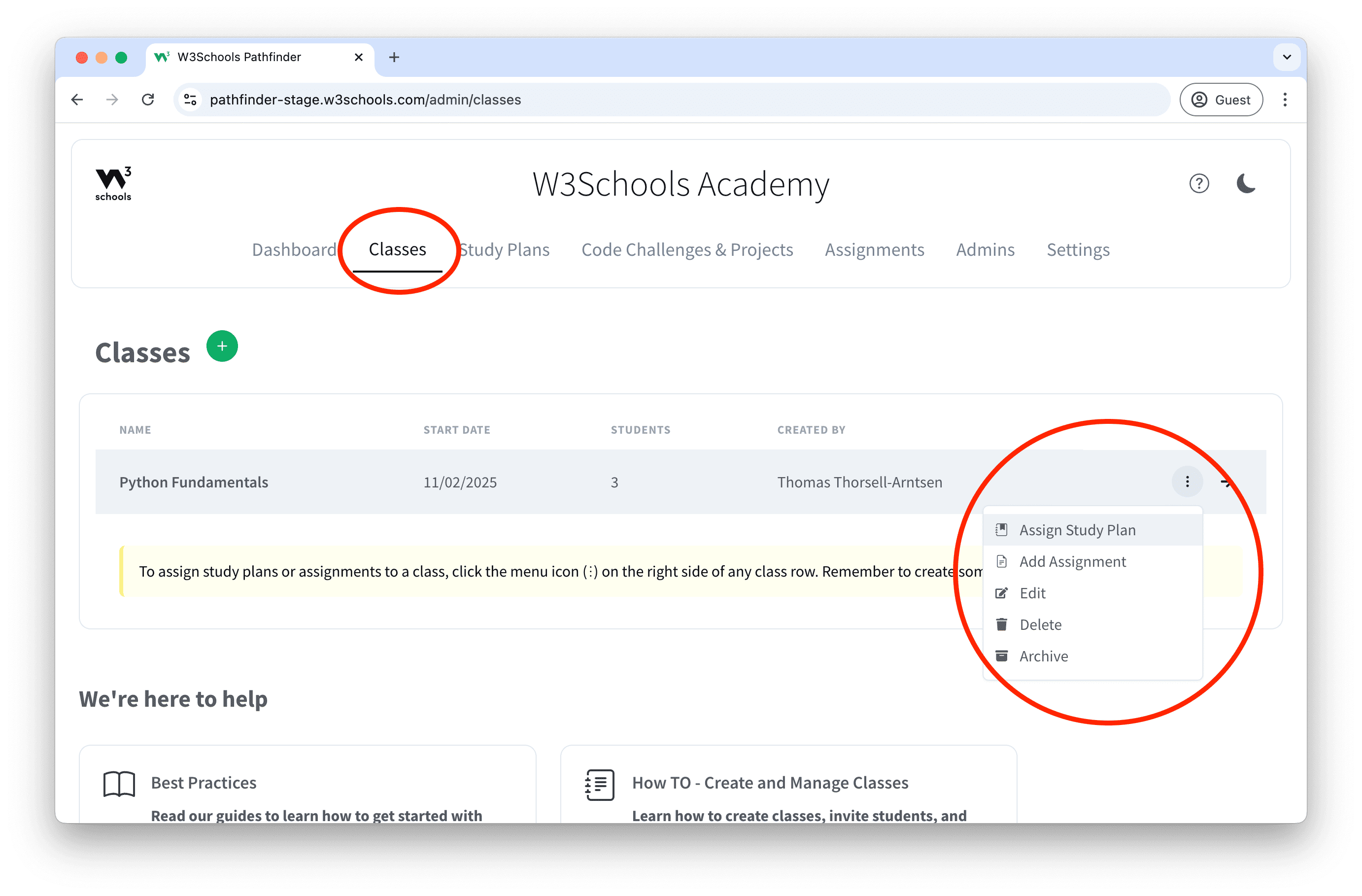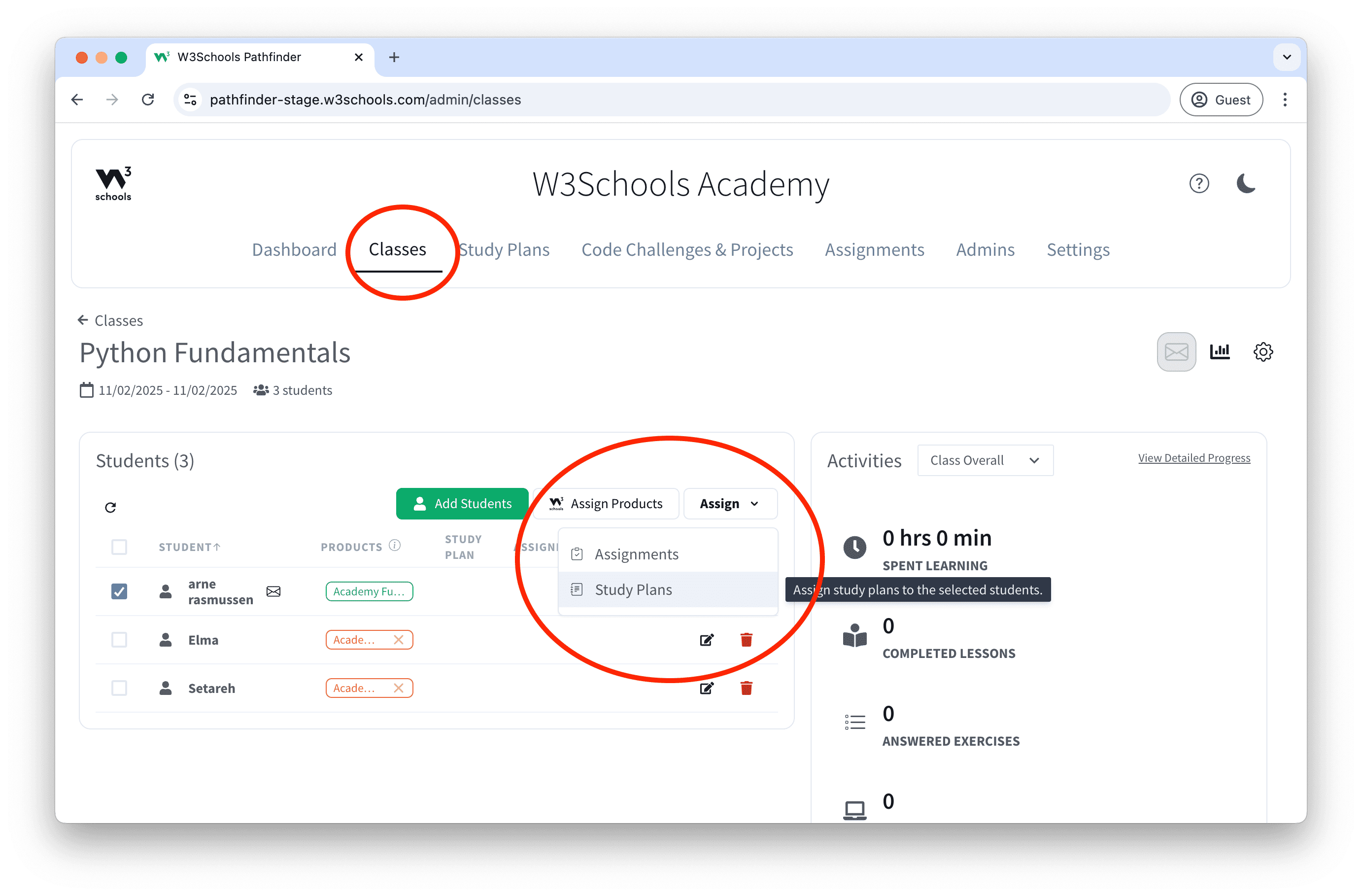 With the Study Plans, you as a teacher can create your own training modules and learning pace.