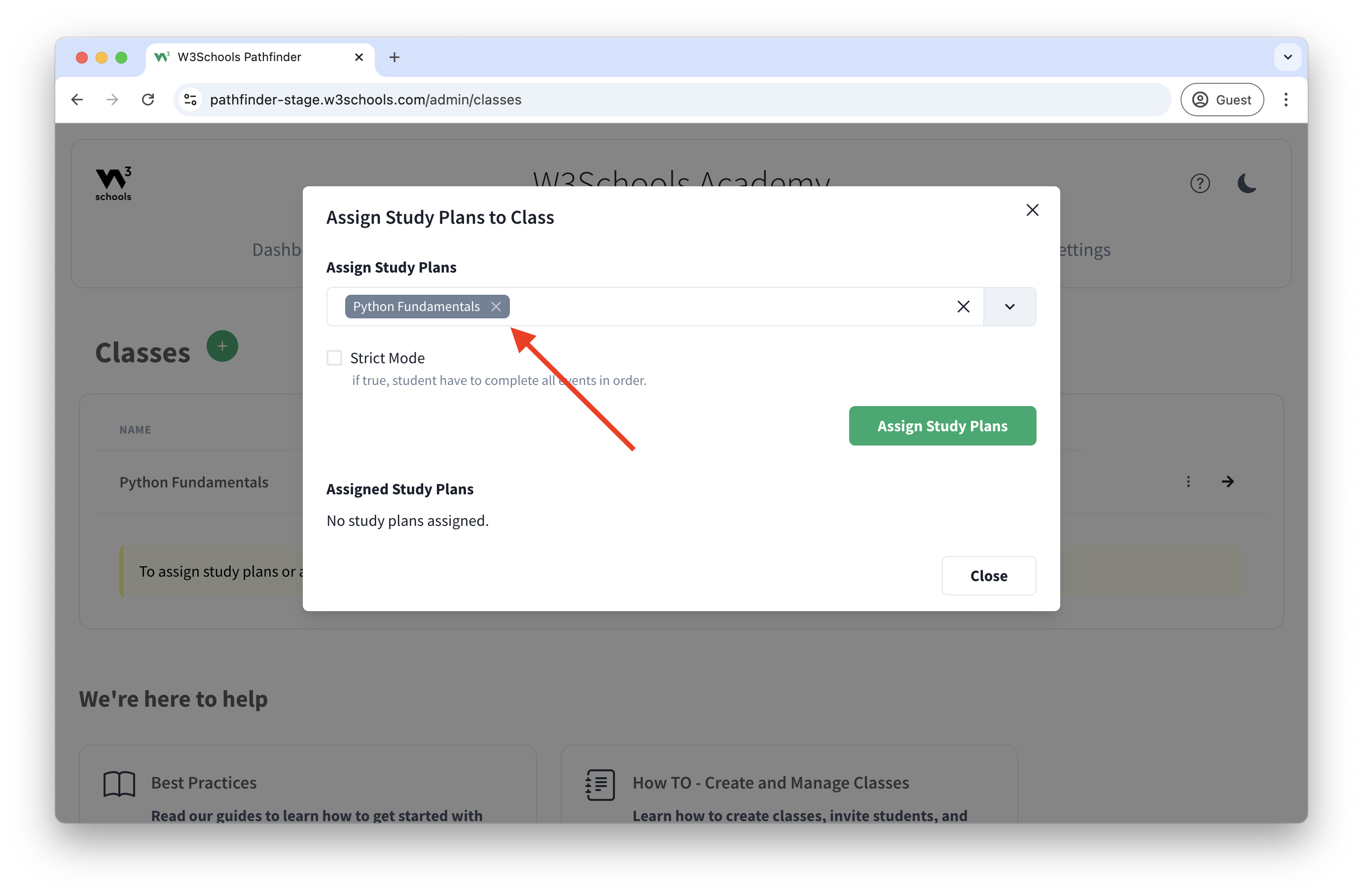 Strict Mode: When enabled, students will not be able to skip lessons. They will have to complete all lessons in the Study Plan.
