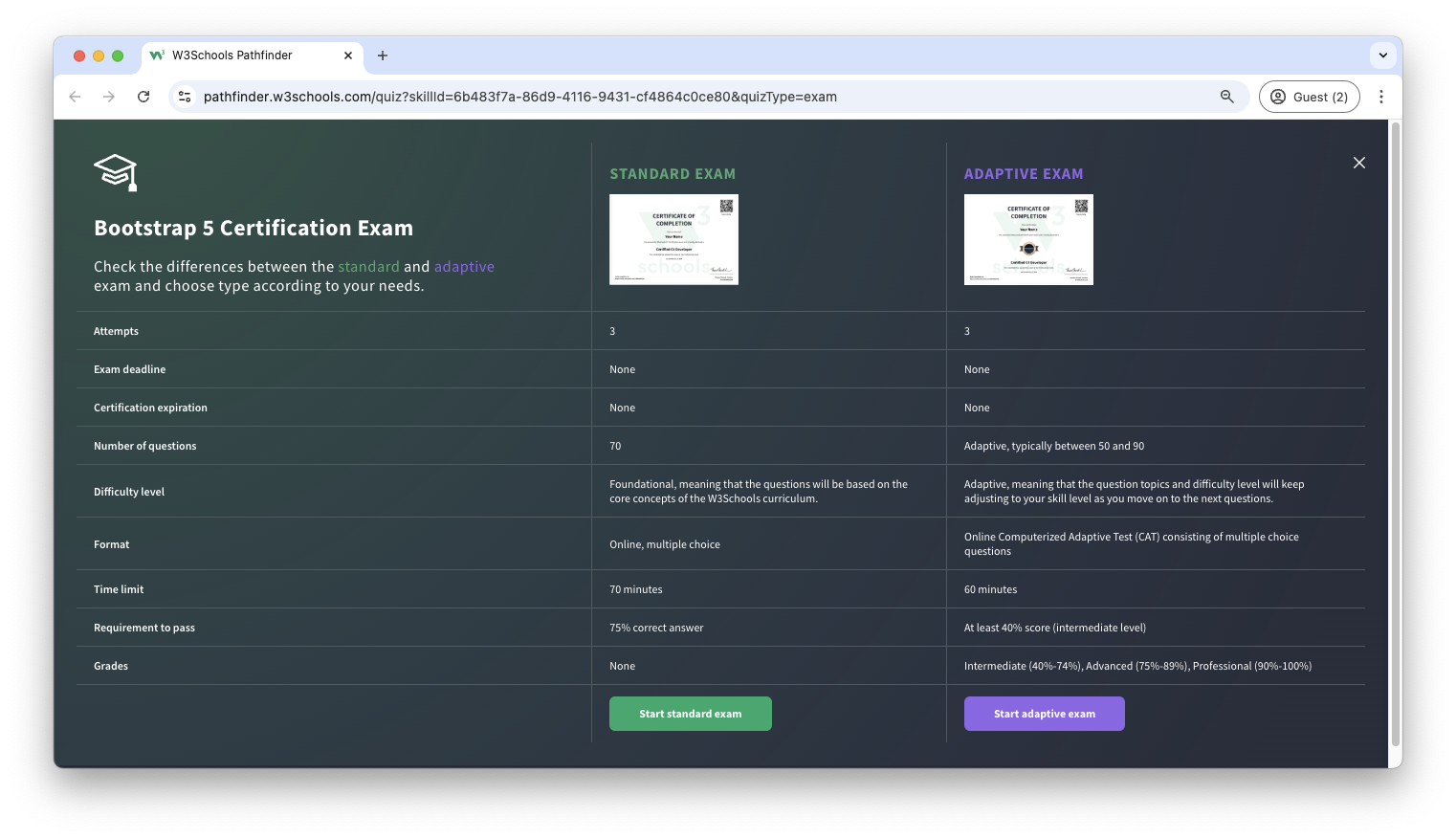 The Bootstrap 5 exam is a test that summarizes the W3Schools Bootstrap 5 syllabus.
