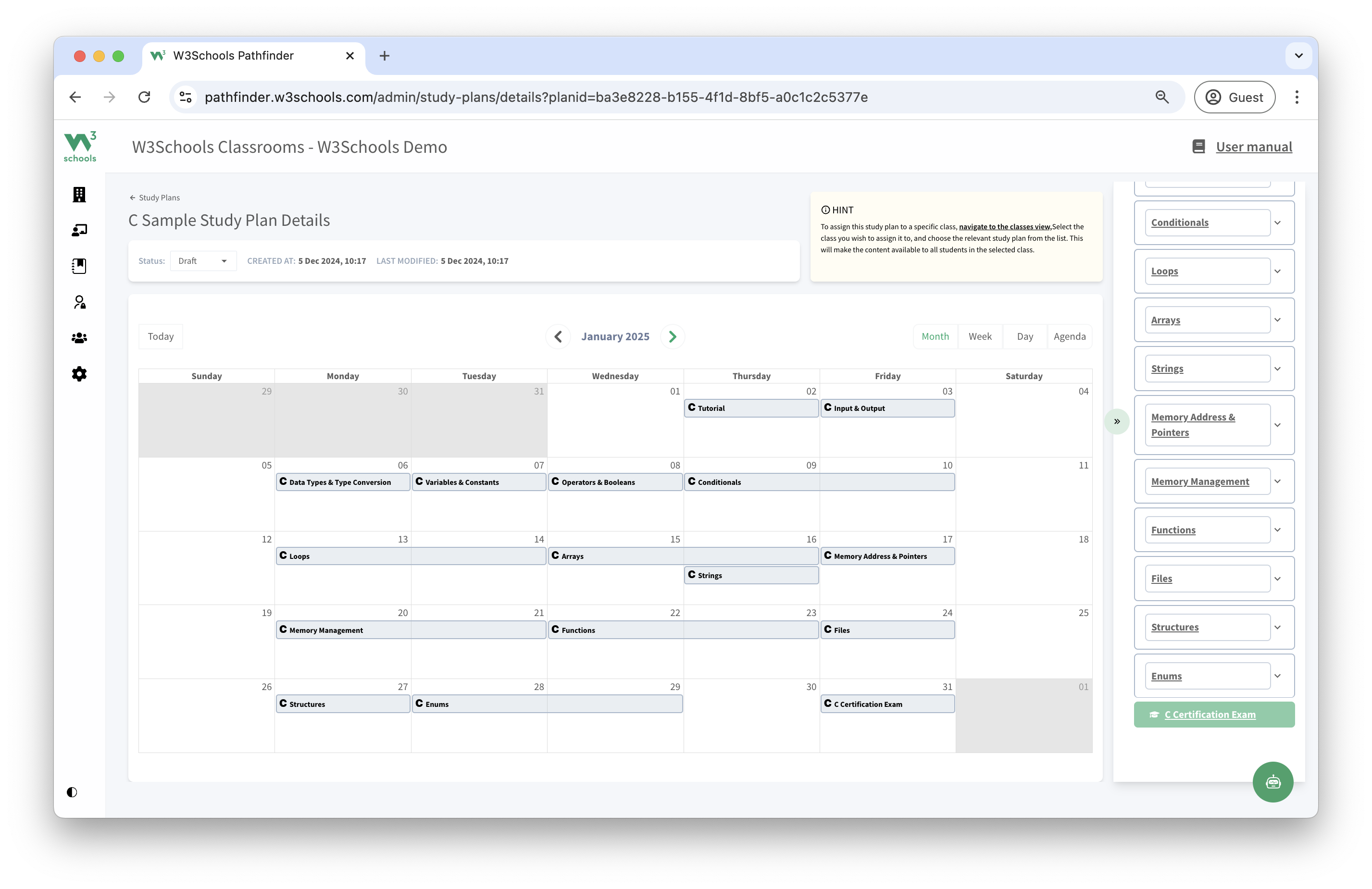 This study plan is a feature of W3Schools Academy.