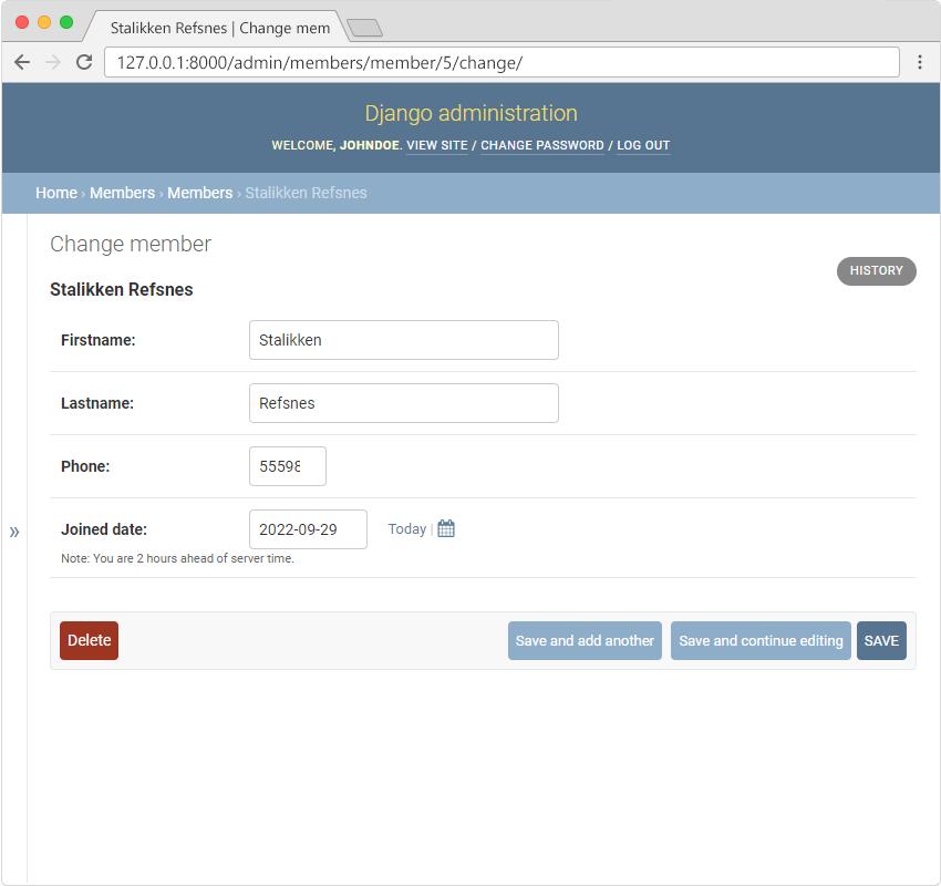 Now we are able to create, update, and delete members in our database, and we start by giving them all a date for when they became members.