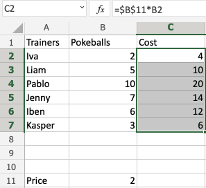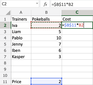 Congratulations! You successfully calculated the prices for the Pokeballs using an absolute reference.