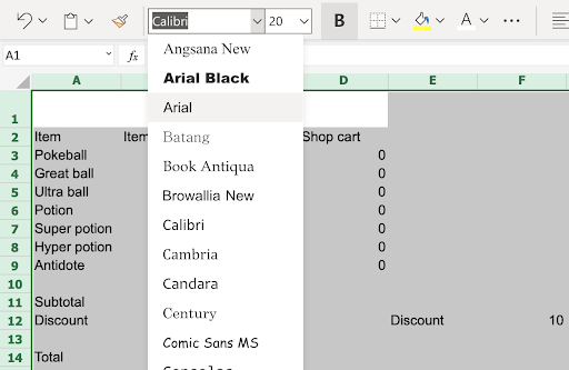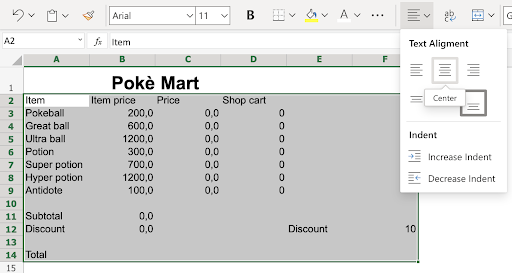 Good job! You have changed the fonts for all text to Arial and aligned A2:F14 to the Center.