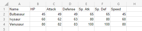 Let's see the stats change for Bulbasaur evolutions.