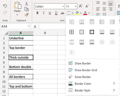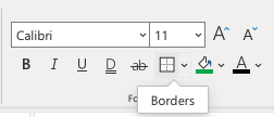 The Borders menu is accessed in the Ribbon, in the Font group.