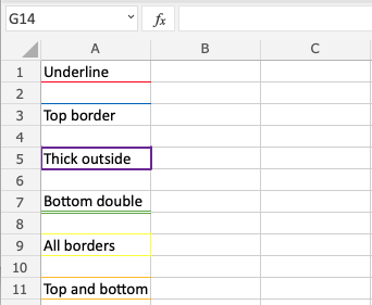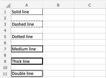 Excel offers 6 different border styles: