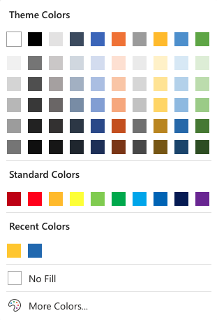 The option allows selection of theme colors, standard colors or use of HEX or RGB codes by clicking on the More Colors option: