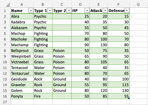 Note: Get familiar with the Table Styles. Try different options to see how they look.
