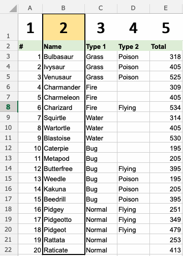 Have a look at that! The VLOOKUP function has successfully found the Pokemon Squirtle which has the ID# 7.