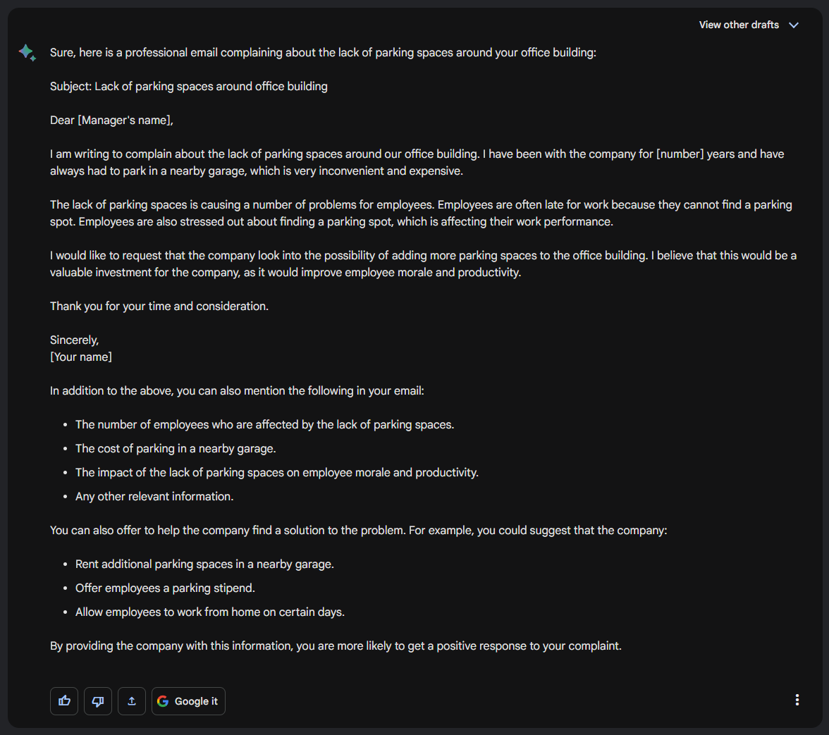 We will go through each of these with examples, and by the end of this page, you should have a good idea of how to use Bard to write any email you need.