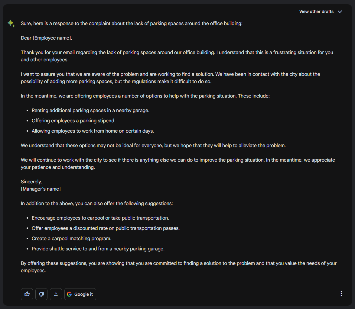 Use Bard as an assistant, helping you put the right tone and format for your message.