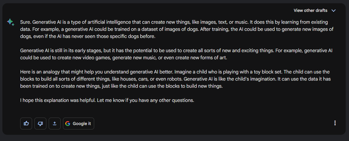 A response from a Generative AI (in this case, Bard) could be: