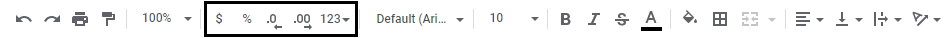 Pro tip: The rectangle in the top left corner by row 1 and column A can be clicked to select all cells in the sheet. This can be useful if you want to change the Number format or change Decimals for all cells.