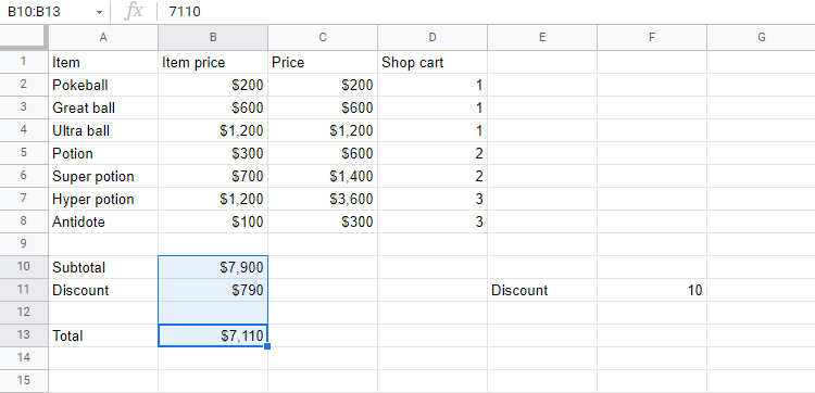 In the example we have cells that represent prices, which can be formatted as Currency.