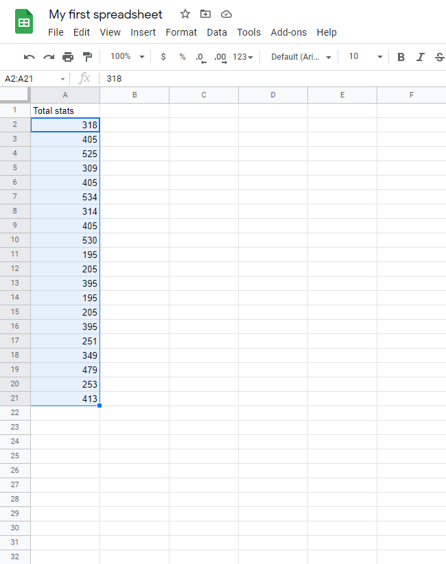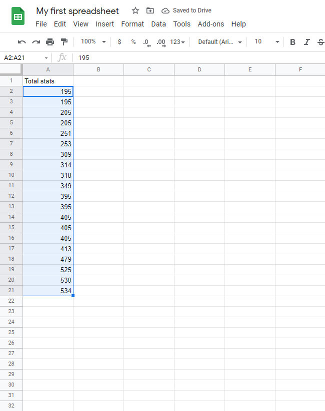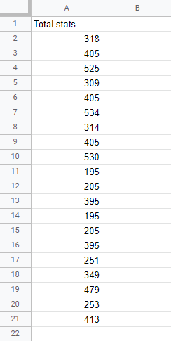 In the image below the sorting is done based on the Total stats values in column B