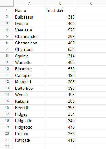 The image above shows that the relationship between column A and B is broken. The Pokemon now have wrong Total stats.