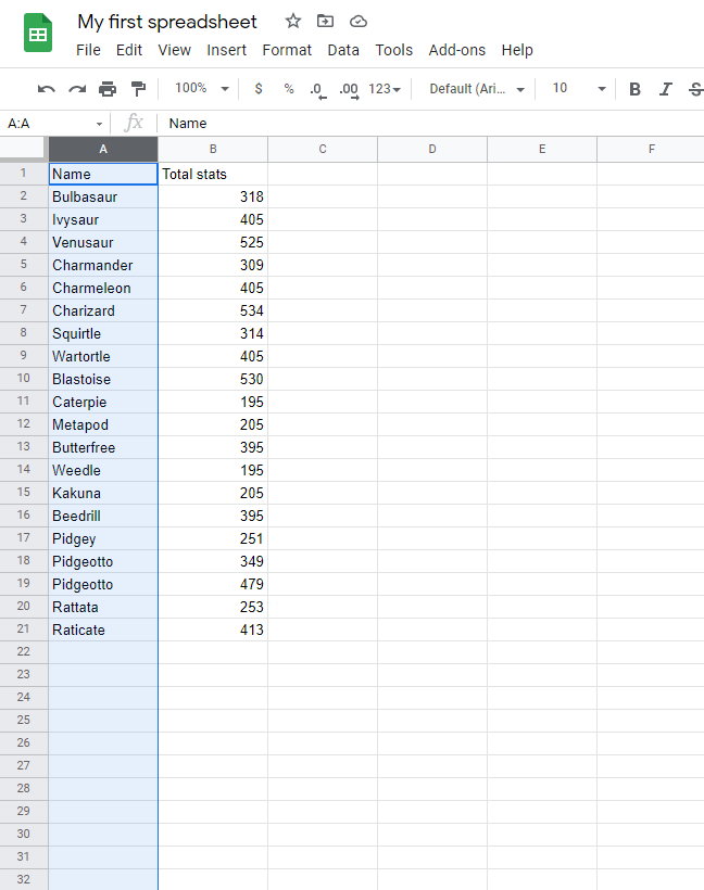 - Click on the Data menu and select Sort sheet by column A, A → Z