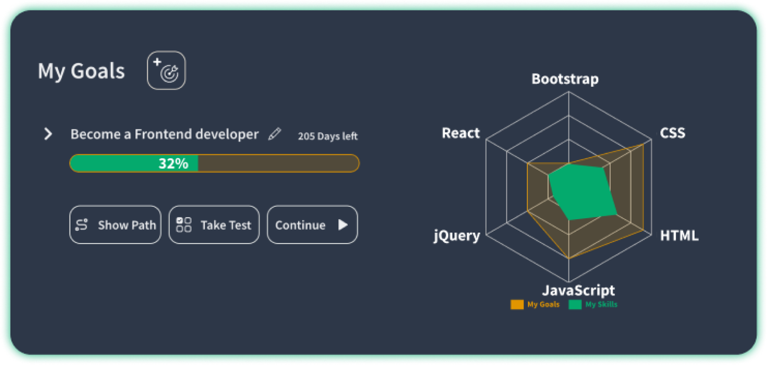 Find your personal learning path by setting clear Goals. Goals help you stay focused and motivated learning new skills.