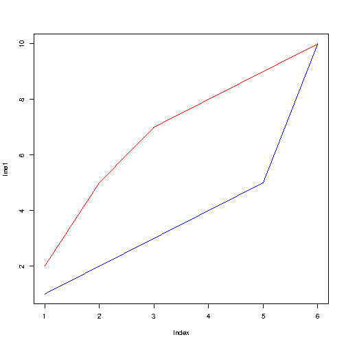 To create a line, use the plot() function and add the type parameter with a value of "l":